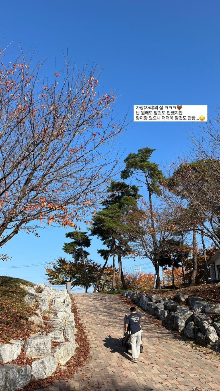 우리 아이는 단풍잎을 주워서 이리저리 던져 보기도 하고, 신기한 듯 바닥을 쓸어보기도 했다. 그러다 웨건을 끌어주니 그 안에 앉아서 신나게 강변을 따라 이리저리 다녔다. 덕분에 나도 운동 제대로 한 기분. 아이가 이렇게 즐거워하는 모습을 보니 오길 잘했다는 생각이 들었다.