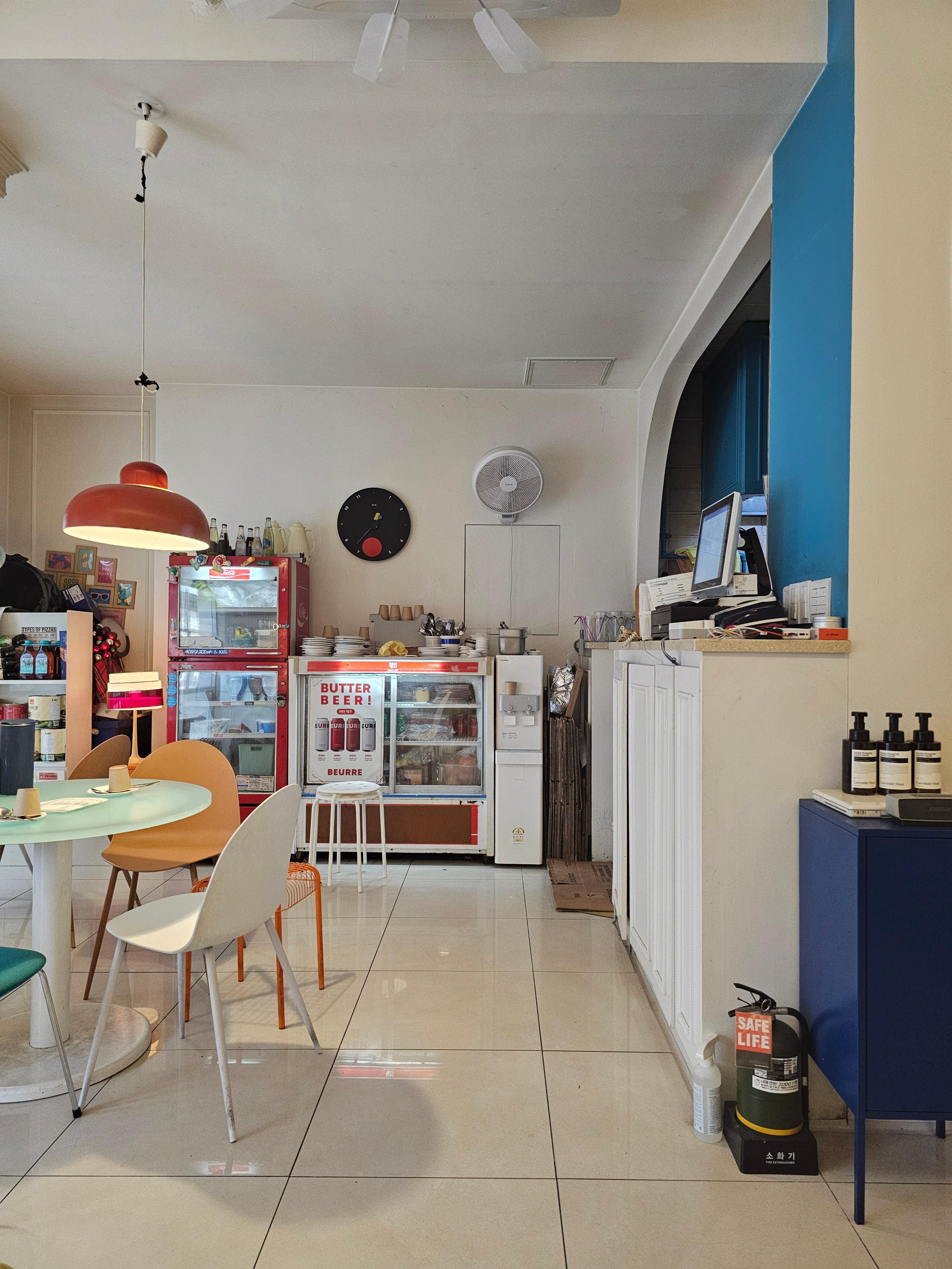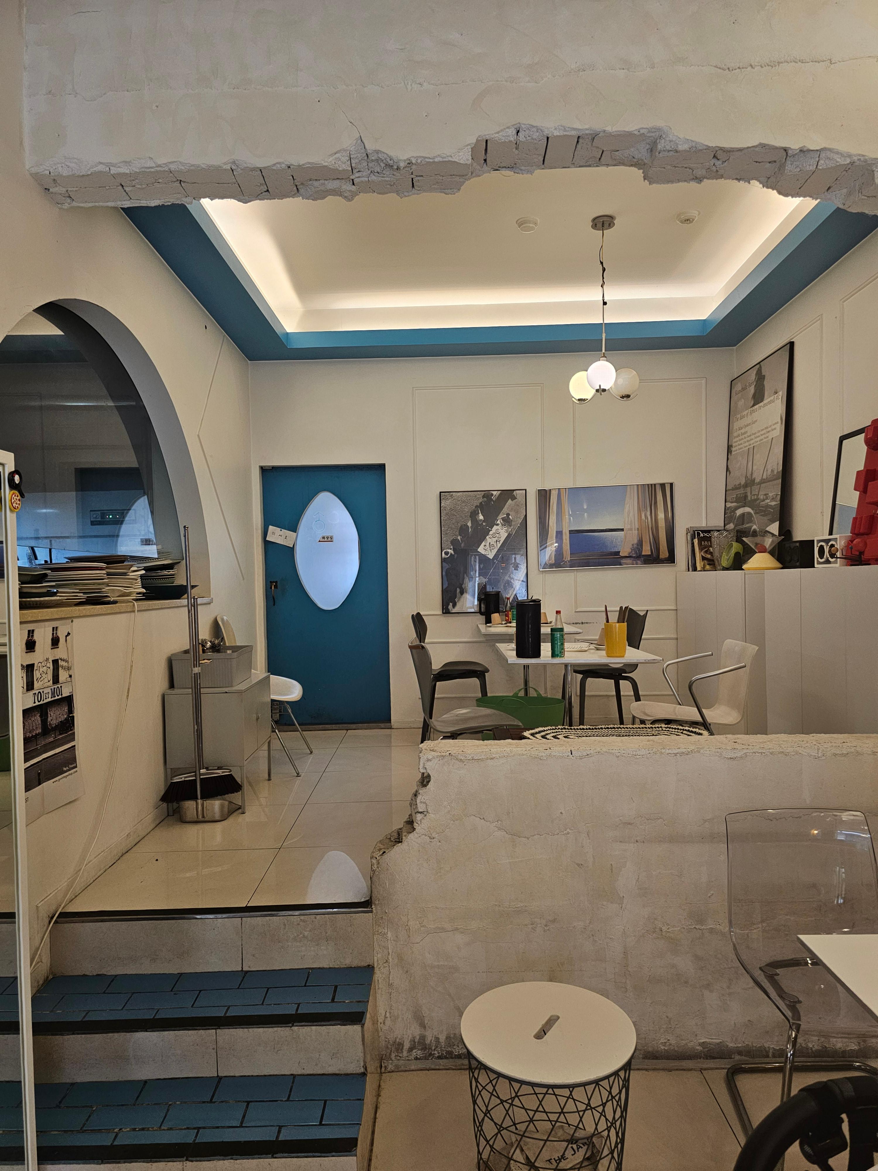 지중해 느낌의 파란색 시그니처 컬러와 아담한 인테리어가 인상적이었음.